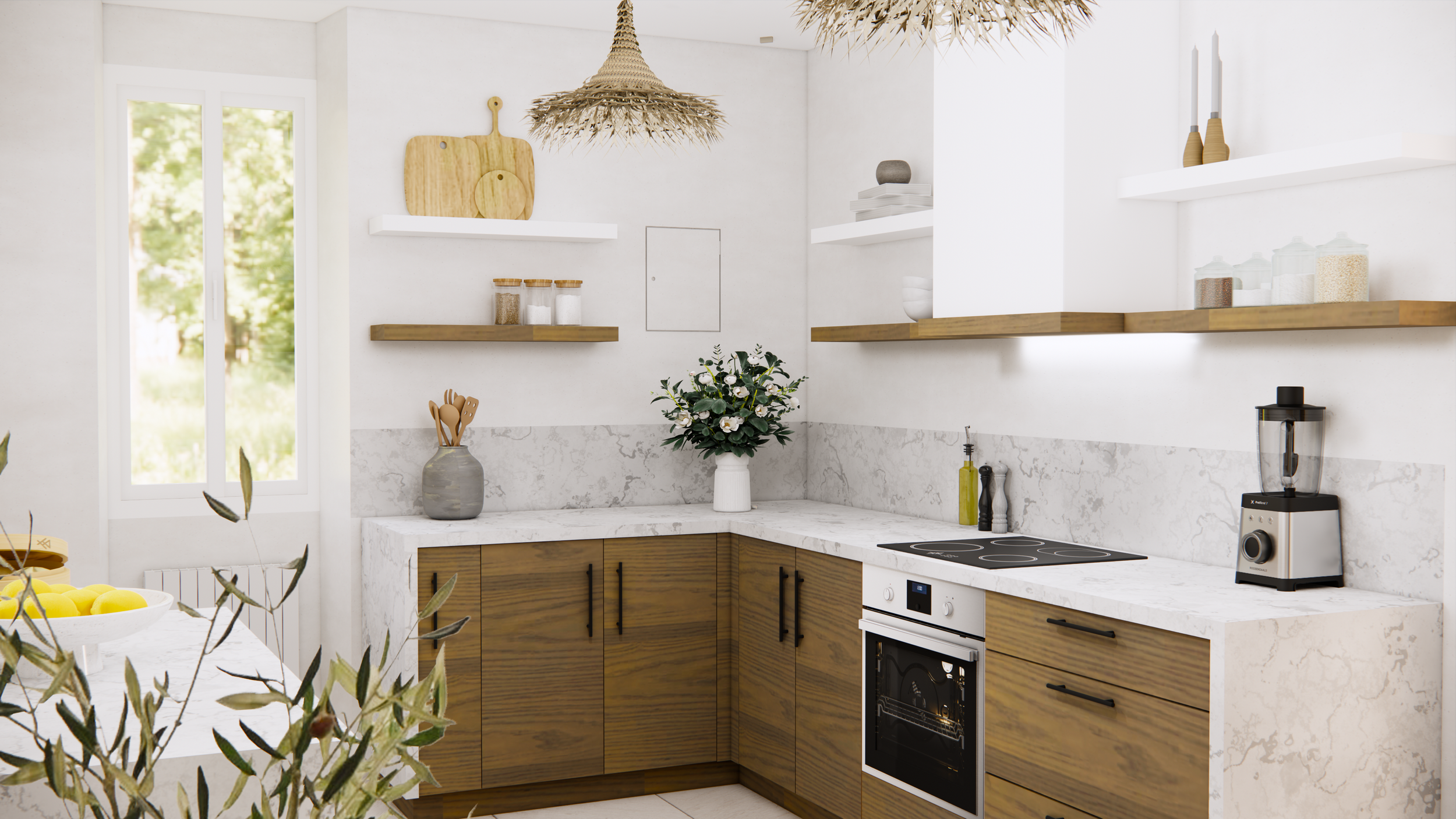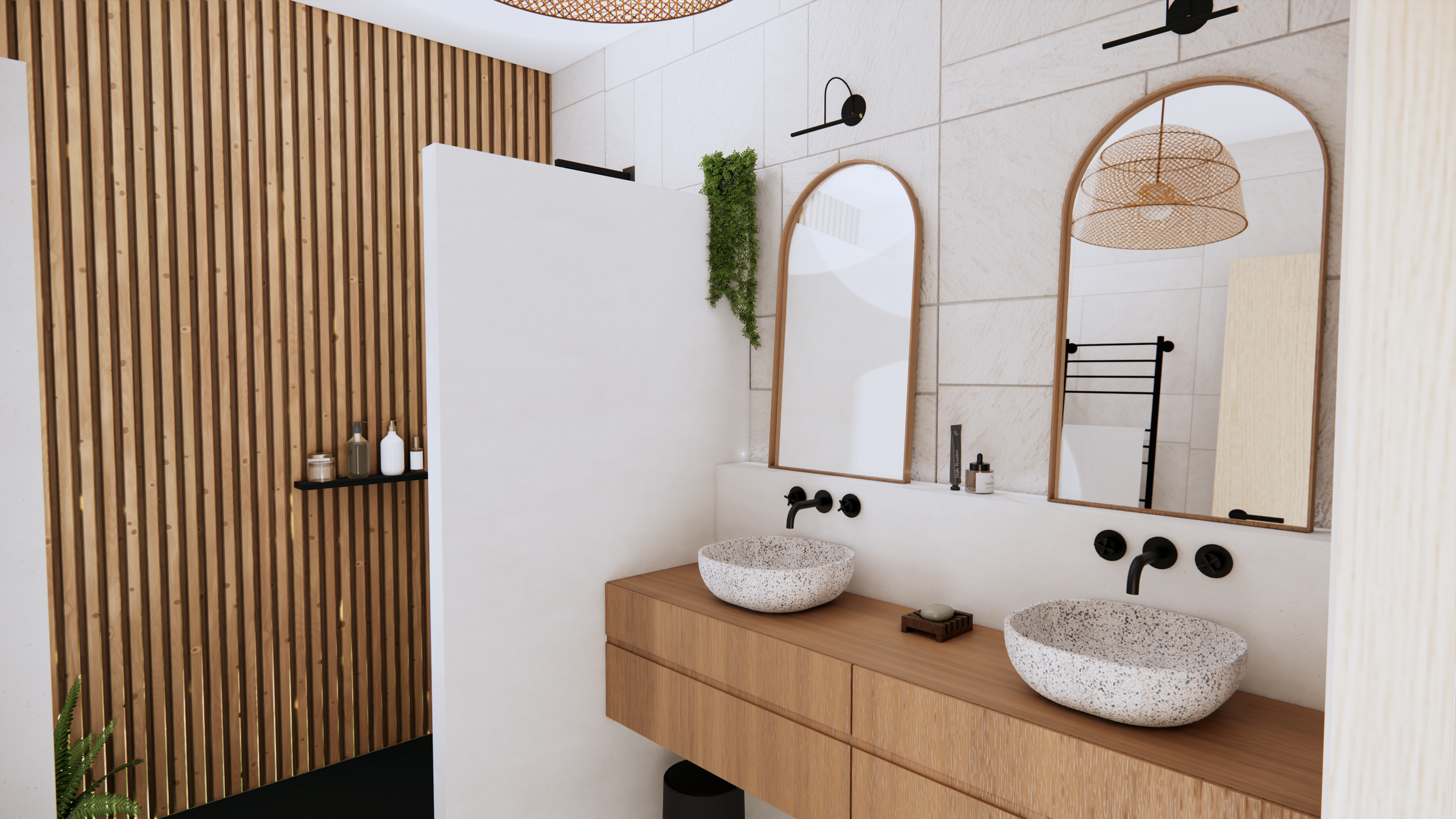 Tranformation de cette maison de 120 m² en un espace chaleureux avec une décoration inspirée des maisons méditerranéennes, des couleurs douces, des tons neutres, et l’utilisation de matières naturelles.