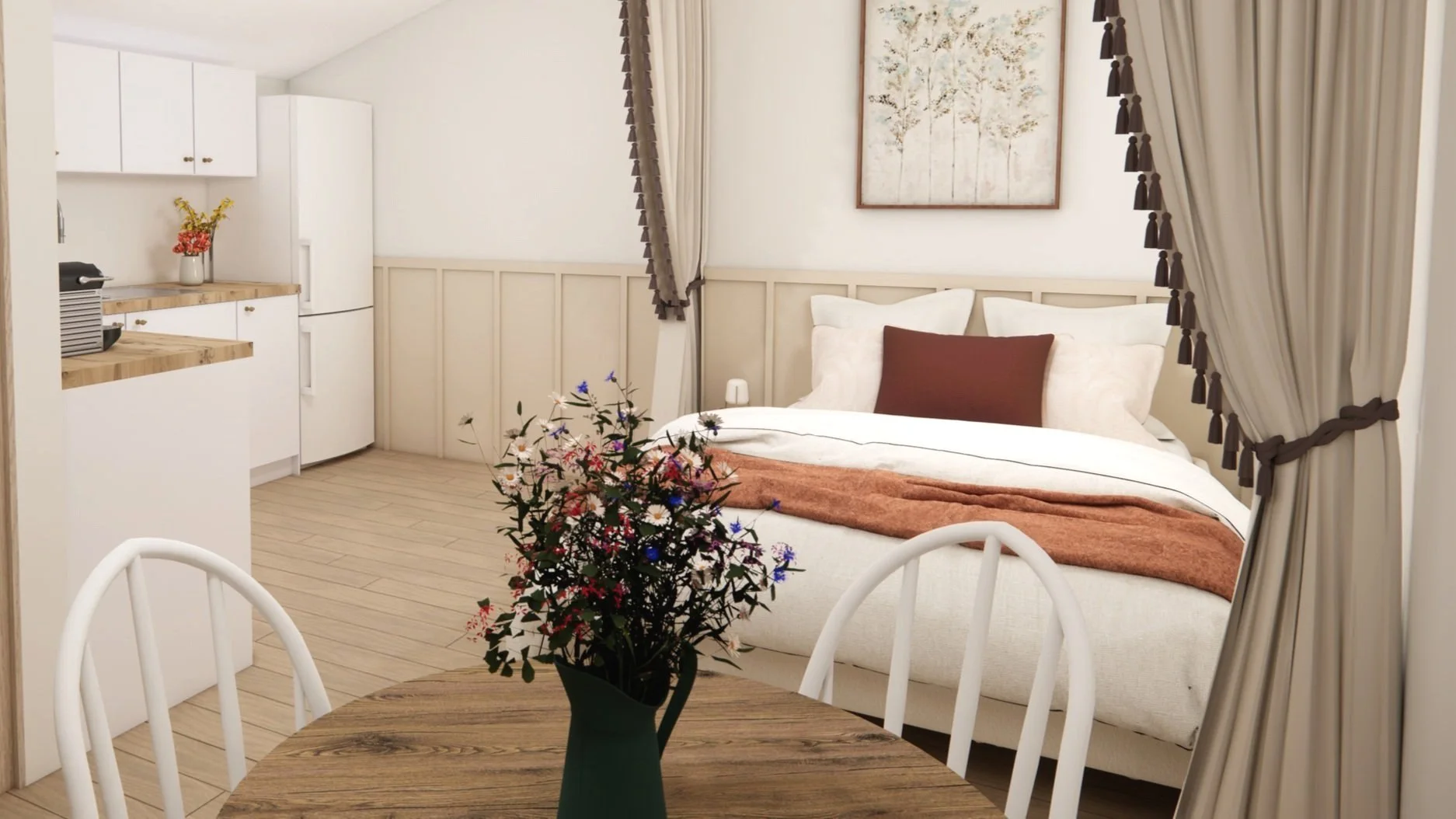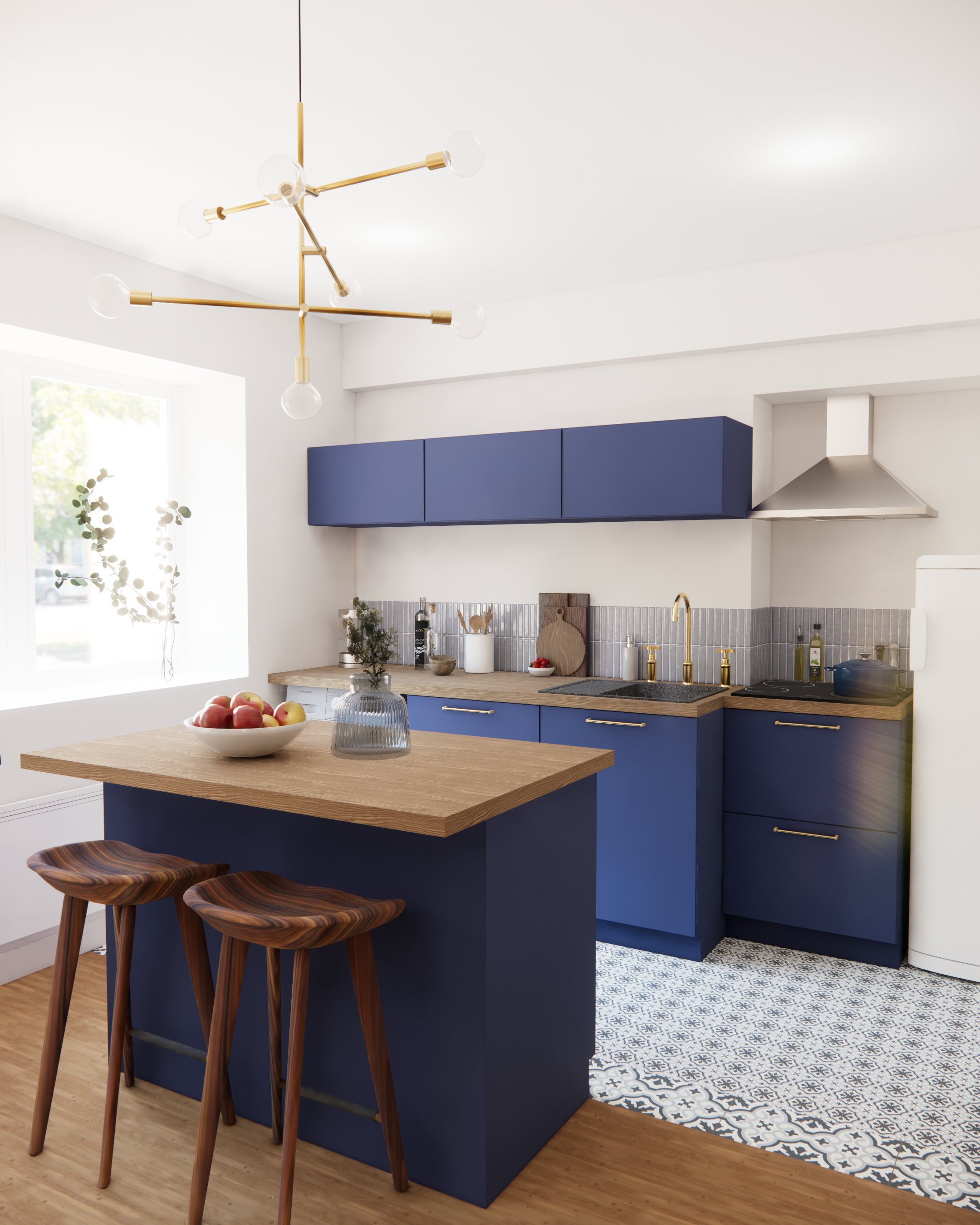 Appartement angevin de 37 m², remis au goût du jour pour des locations moyenne durée avec une ambiance chic et chaleureuse, une décoration audacieuse dans le choix des couleurs.